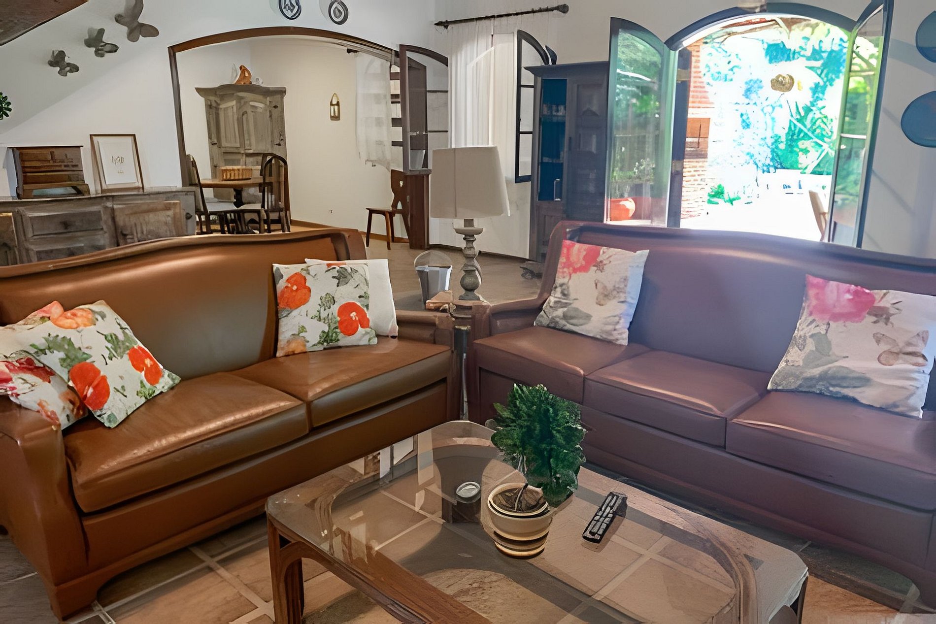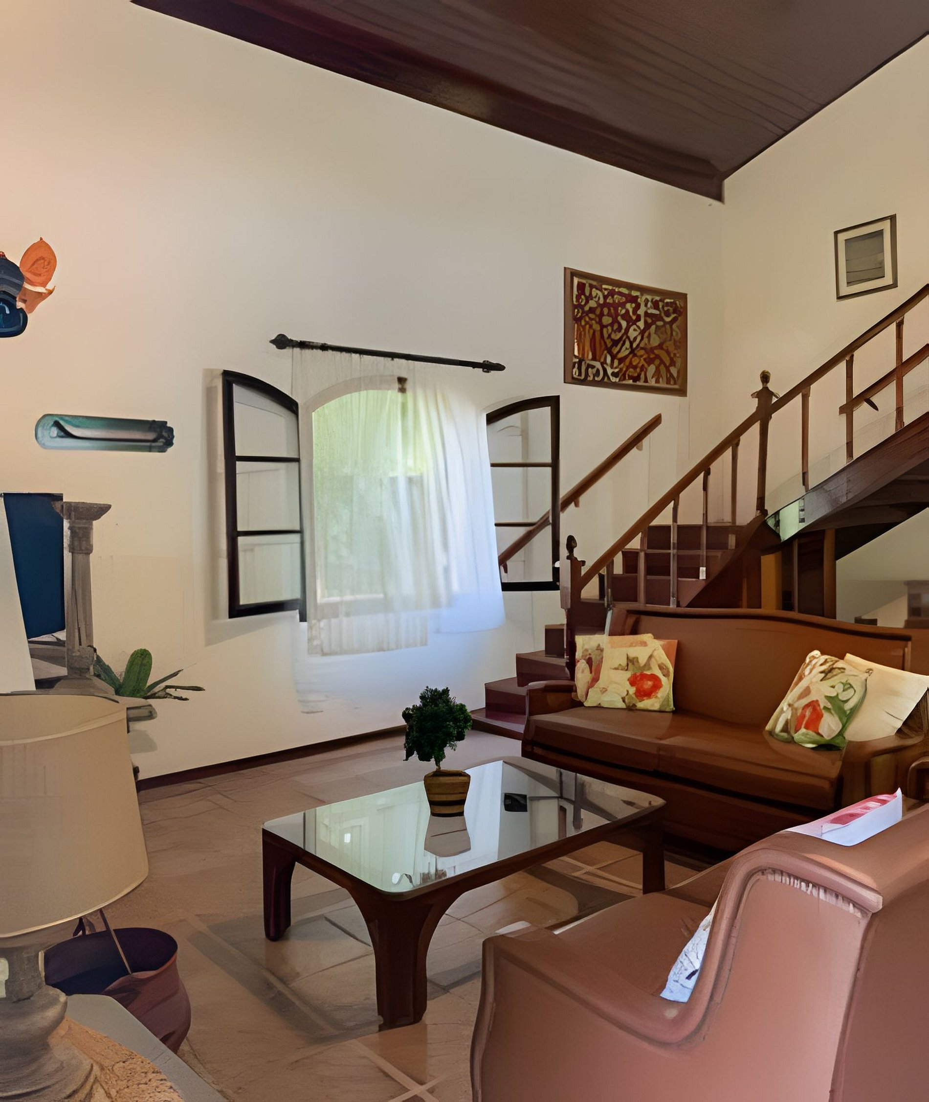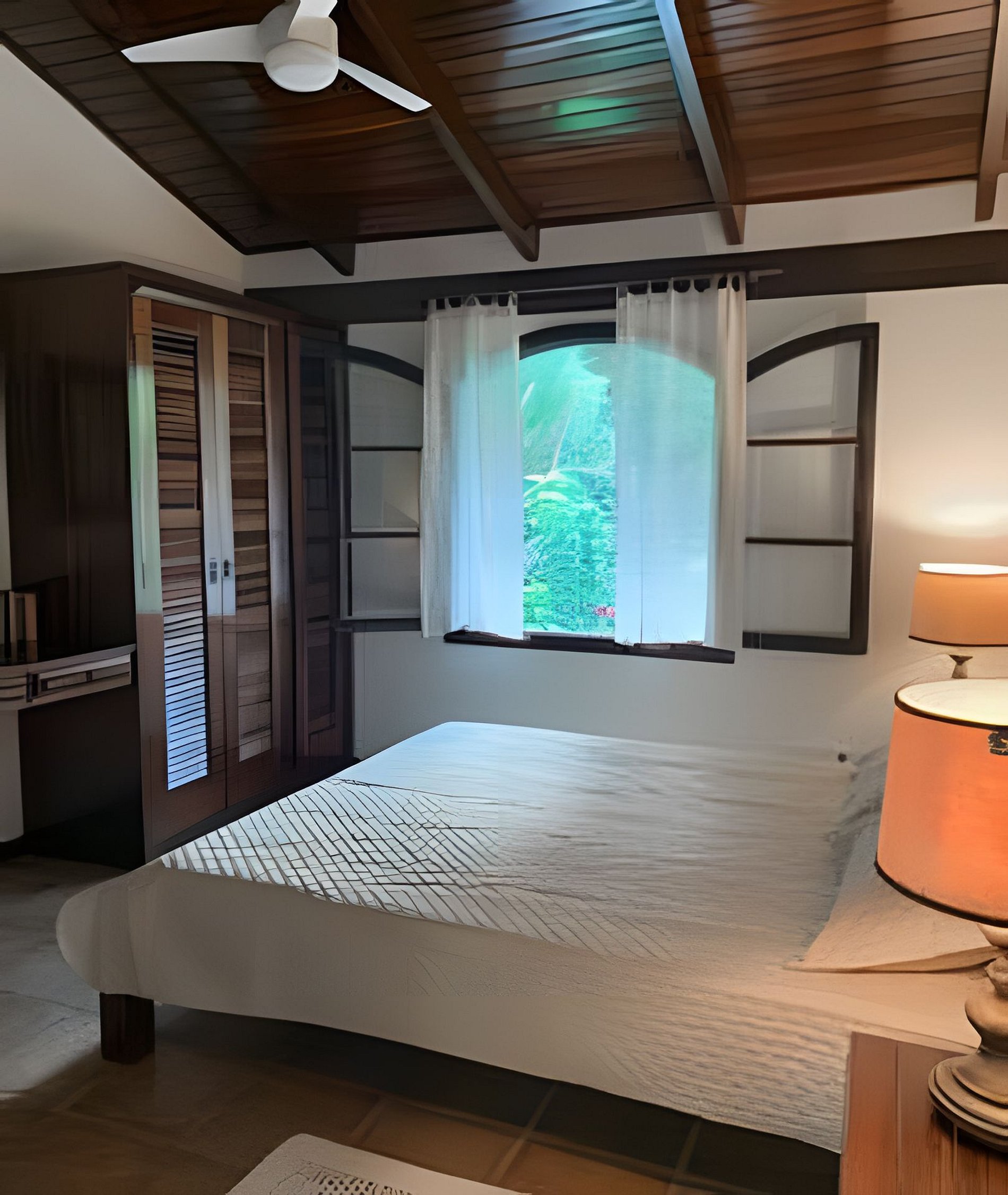 Ventiladores de teto na sala, ar-condicionado nos quartos
