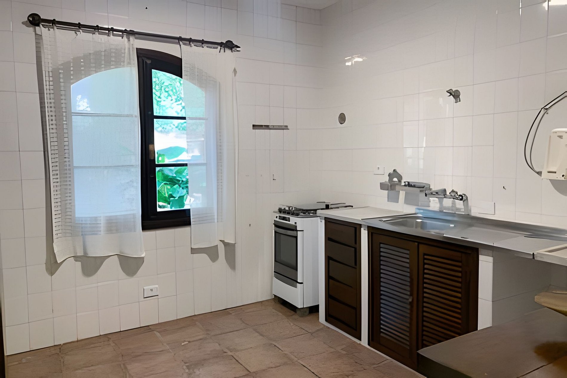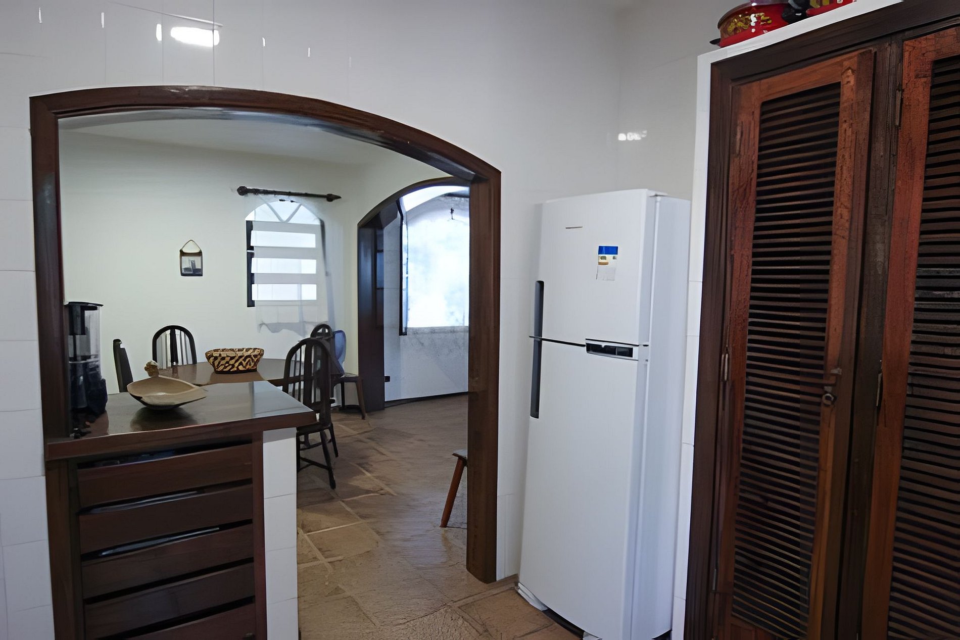 A cozinha não possui filtro interno, porém a água é filtrada externamente.